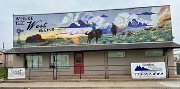 KCRD purchased the vacant old gallery in 2017. We remodeled the interior and created space for three separate businesses, who enjoyed success over the years. A mural was painted on the facade (by Some Girls and a Mural) in 2023. KCRD sold the building 12/31/24. It houses the Kit Carson Mercantile grocery store today.