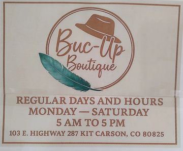 Buc-Up Boutique sells western wear, gifts, handmade jewelry, crocheted items, candles and more. They also offer coffee, tea, cold drinks, breakfast burritos, cinnamon rolls and biscuits and gravy.